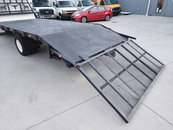 OPTIONS: GVWR 12,300 LBS, 15ft Flatbed Landscape Stake Bed Truck for all your Landscaping Business Needs, with a 4ft Dovetail and 4ft Hinged Ramp Gate, Grey Leather Interior, Manual Front Seats, A/C, Heater, Climate Control, Power Mirrors, Power Windows, Power Door Locks, Cruise Control, Towing Package, Rear Equipment Ramp and Folding Gate, Dual Rear Wheels!!!