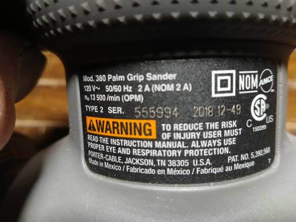 This is a Porter-Cable palm sander model 380. It is in excellent like new condition it works perfectly