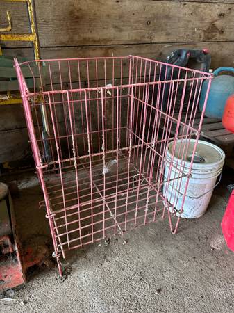 2 Stationary open top wire baskets. Lots of potential uses! Storage, chicken nesting boxes. Allows air flow. Measures; total 32” tall; legs 6”; 25” x 25” wide Now $10 for both
