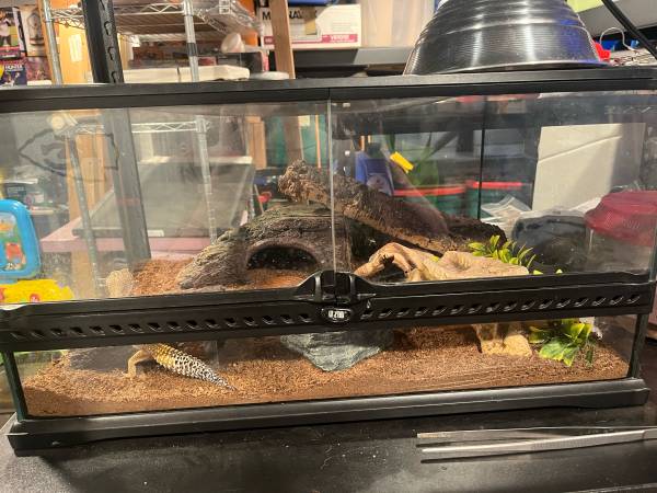 Leopard gecko with 12x24x18 exo terra front opening enclosure. $100 obo Pick up in Sioux Falls